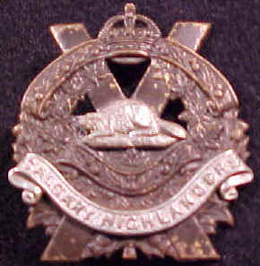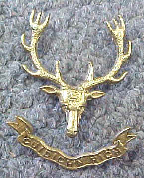 Seaforth Highlanders of Canada, Vancouver BC. Worn with a Mackenzie tartan background. Motto translates to Save the King.